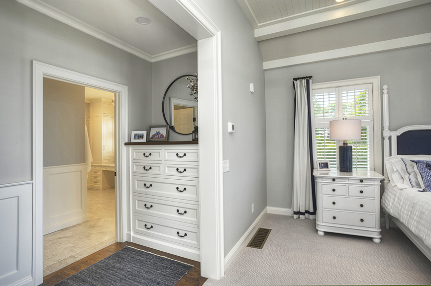 Located just around the bend from a prominent Lake Erie outcropping beloved by Rocky River residents, the design emphasized privacy from the earliest planning stages. Equally important was capturing the morning light through generous window placement. The result is a thoughtfully designed, spacious primary suite, subtly offset at the front and extending 20 feet beyond the existing foundation at the rear, where it opens to a private patio.